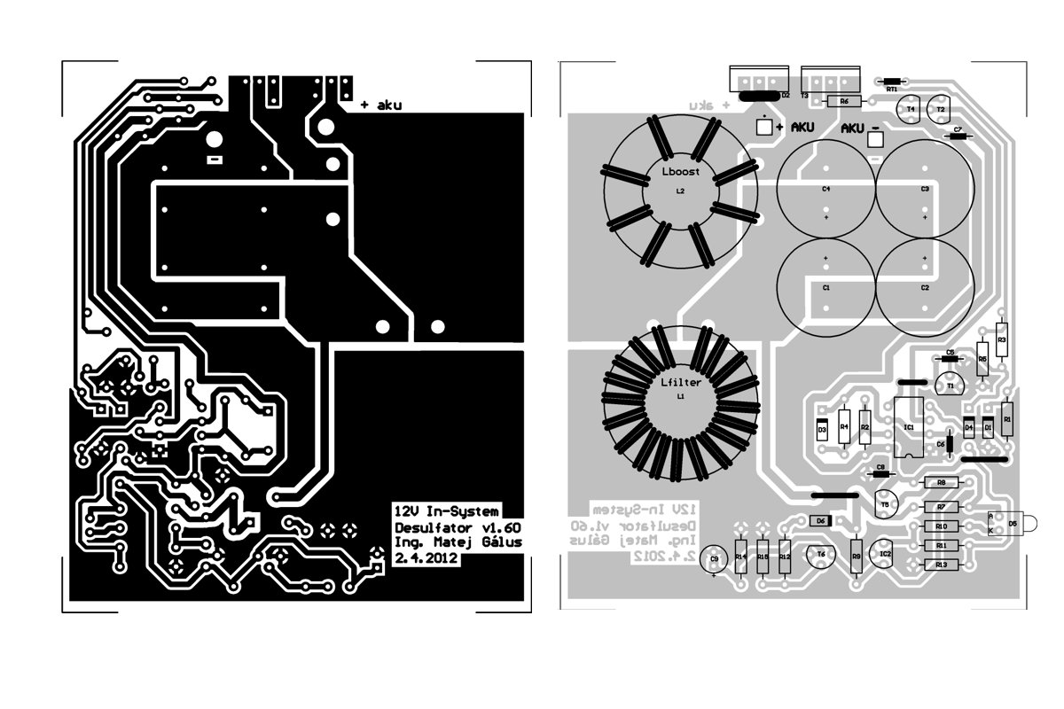 Plošný spoj pro stavbu Desulfátor olověných baterií dle